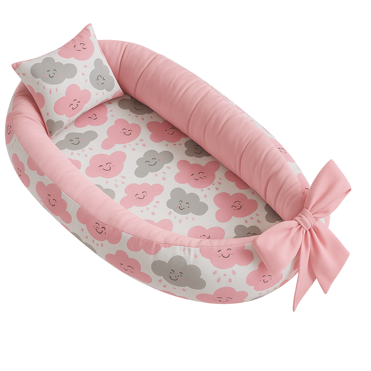 Ninho Para Bebê Redutor De Berço Pompom Nuvem Rosa