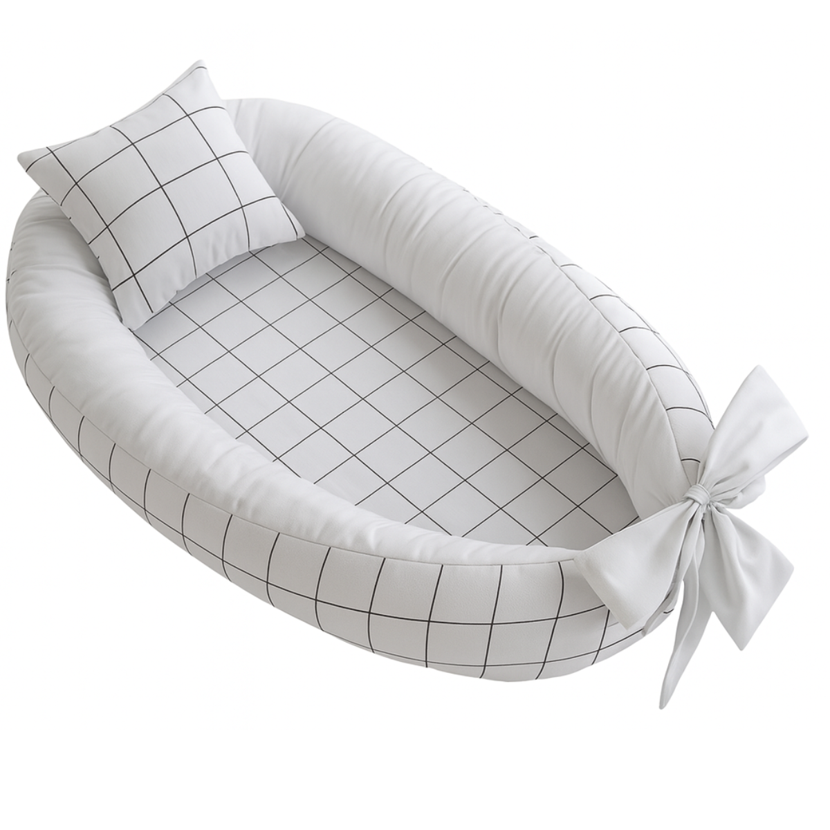 Ninho Para Bebê Redutor De Berço Pompom Xadrez Branco