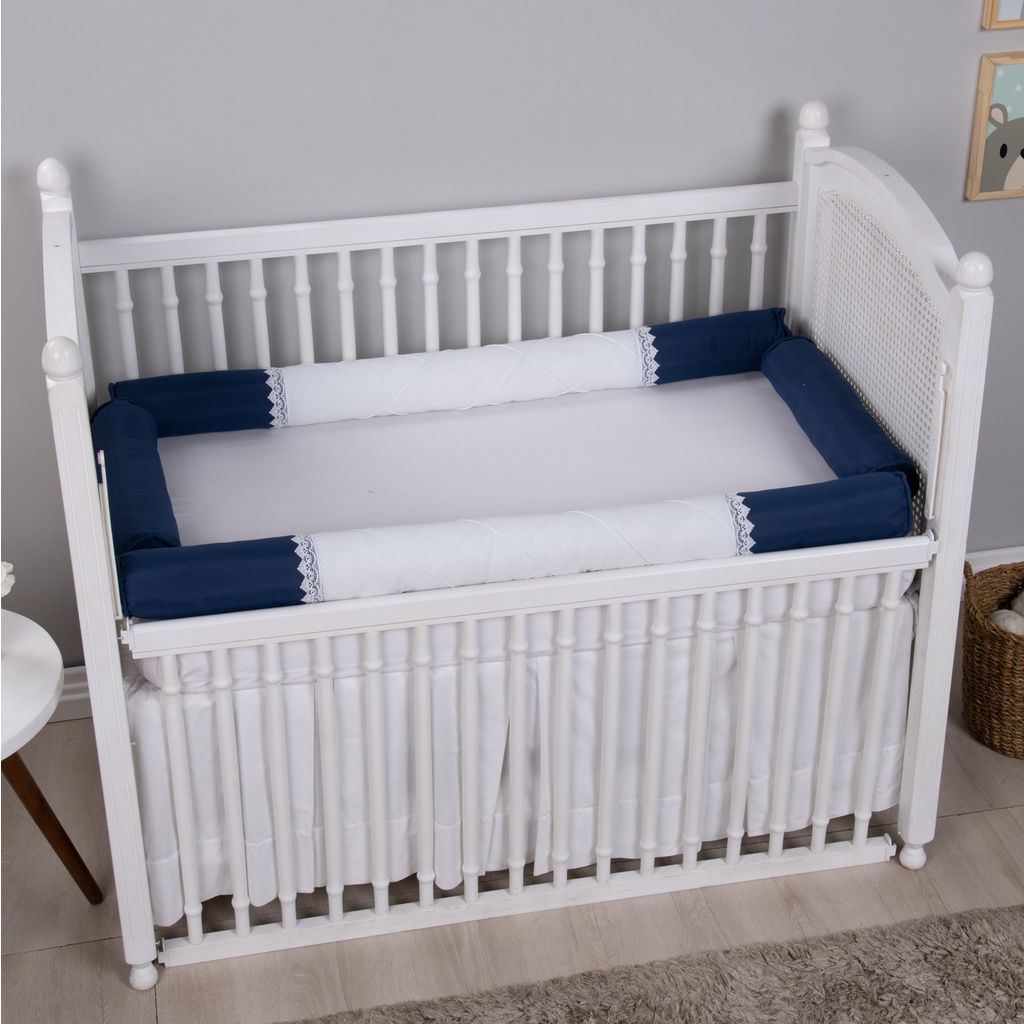 Kit Berço Bebê Guipir 100% Algodão Menino Marinho
