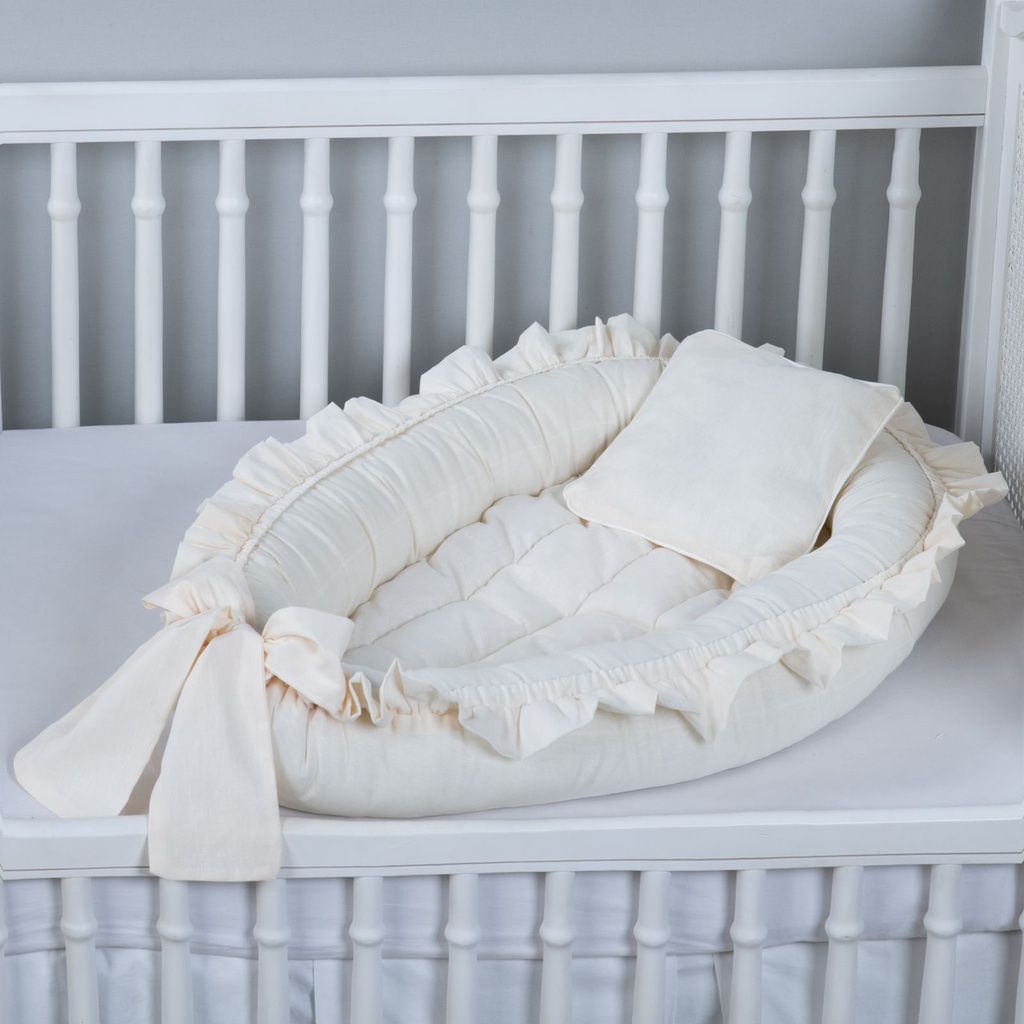 Ninho Redutor de Berço Babado Percal 200 Fios Algodão Palha