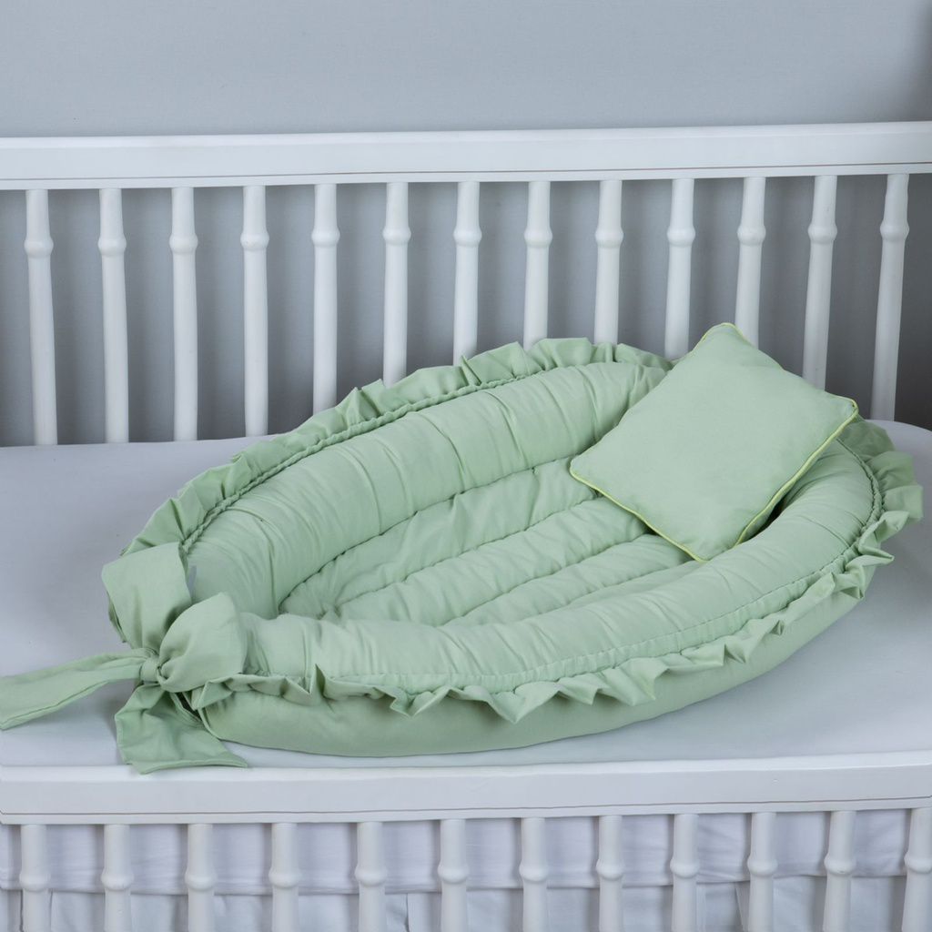 Ninho Redutor de Berço Babado Percal 200 Fios Algodão Verde