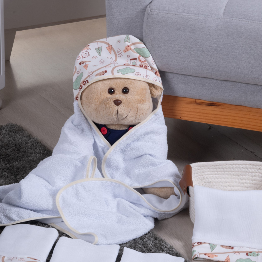 A Toalha de Banho é um item indispensável para o enxoval do recém-nascido. A toalha de banho felpuda com capuz foi feita visando o conforto do seu bebê, sendo assim, ela foi desenvolvida com tecidos da melhor qualidade para garantir o bem-estar e aconchego pré e pós banho. Com ótima absorção, toque macio, acabamento em fralda, capuz e estampas lindas, a toalha é de grande qualidade e recomendada até os 2 anos de idade.